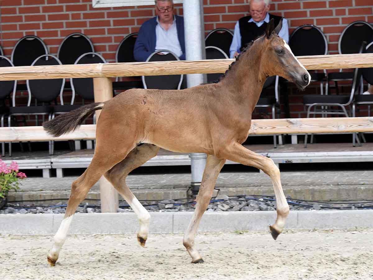 From the renowned Weissena dam line: El Trueno is the name of this enchanting youngster by Escamillo, silver and bronze medallist at the World Championships for young dressage horses as a six and seven-year-old. An extravagant stallion prospect of a special kind. Granddam Weissena’s Diva is sister to the licensed Dark Fire by Donnerhall and the Intermediaire I successful Wilde Orchidee/Mareike von Poblotzki. From the famous Weissena family: The licensed, Olympian Total Hope OLD, Damon Gold OLD, For Gold OLD, top sire Viva Gold, Extra Gold and Dodo Weihgand as well as multi-champion Weihegold OLD, who won Olympic and European Championship gold with Isabell Werth.